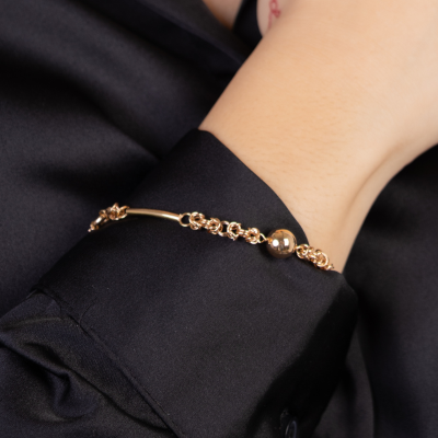 Pulsera de malha virolinha con esferas en Oro Amarillo 19K, elegante, luminosa y atemporal.