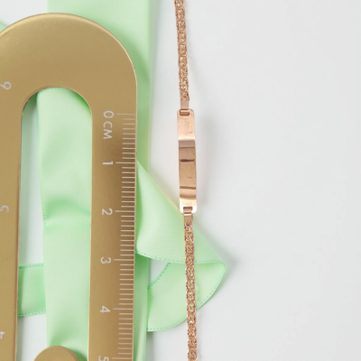 Una pulsera delicada en oro 9K amarillo, con placa personalizable para grabar el nombre y la fecha de nacimiento del bebé.