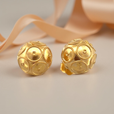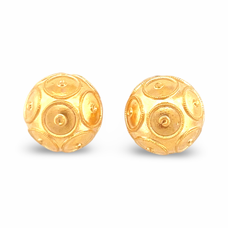 Brincos Contas de Viana 10 mm Filigrana em Ouro 19K Amarelo