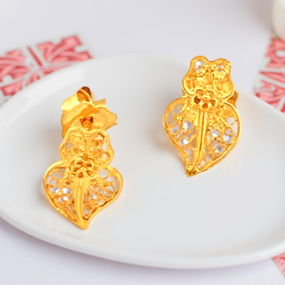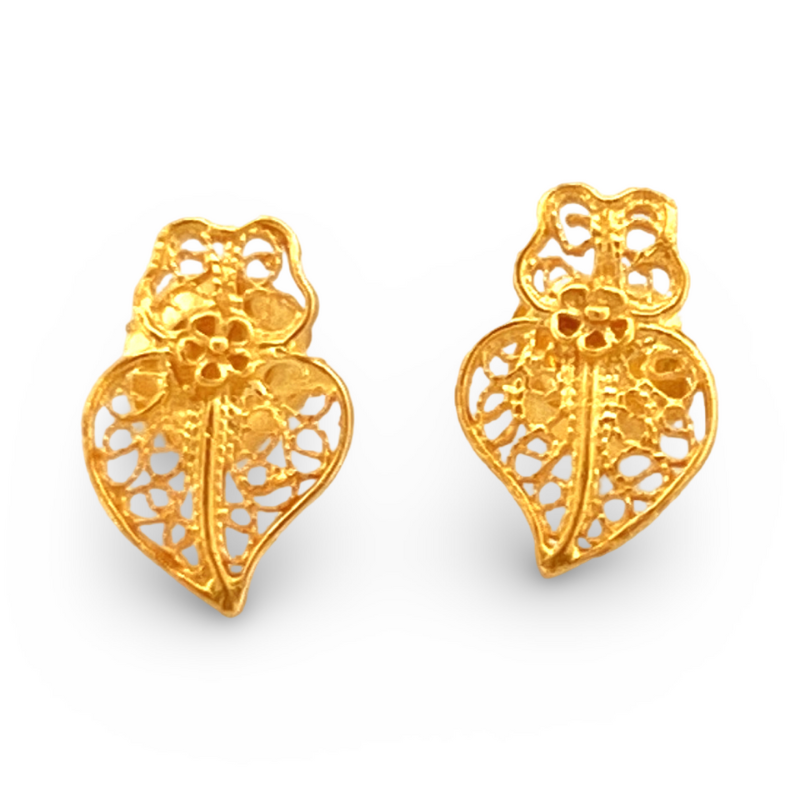 Brinco Pequenos Corações de Viana 10mm Filigrana em Ouro 19K Amarelo