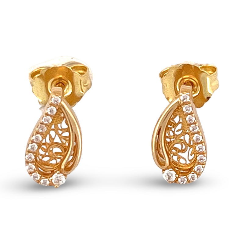 Brincos Pequenas Gotas de Filigrana 12mm em Ouro 19K Amarelo com Zircónias