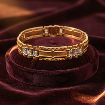 A Pulseira Real com Safiras Brancas em Ouro 22K Amarelo – Edição Vintage é uma expressão sublime de elegância clássica.