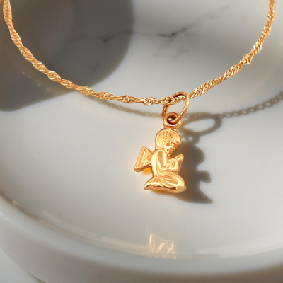 Berloque em forma de anjinho, delicado e simbólico, feito em ouro 19K amarelo, ideal para pulseiras e de grande durabilidade.